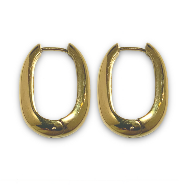 Diseño contemporáneo con alma retro. Estos aros de forma ovalada y acabado dorado pulido aportan un toque de sofisticación atemporal. Su volumen “chunky” los convierte en una pieza clave para elevar cualquier look, desde el más casual hasta el más elegante. Livianos y cómodos, son perfectos para usarlos todo el día sin renunciar al estilo.